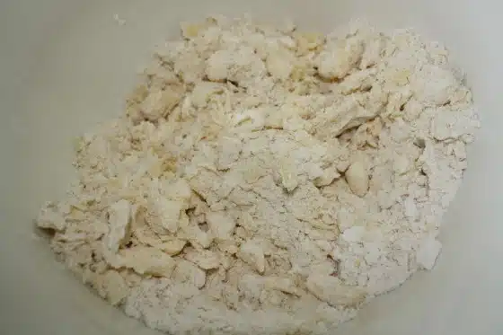 Stop when the mixture looks like cornmeal with lumps and bean-sized bits of butter remaining.
