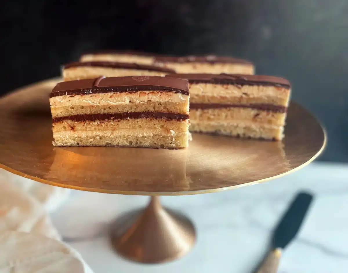 This classic opera cake made with layers of coffee syrup–infused almond sponge, coffee buttercream, and chocolate ganache is among the delicious recipes from season six of Weekends with Yankee.